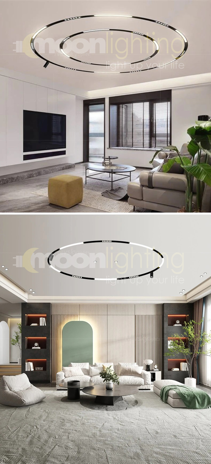 - Thanh ray từ tròn được sử dụng cho phòng khách, sảnh khách sạn, cửa hàng, showroom,...