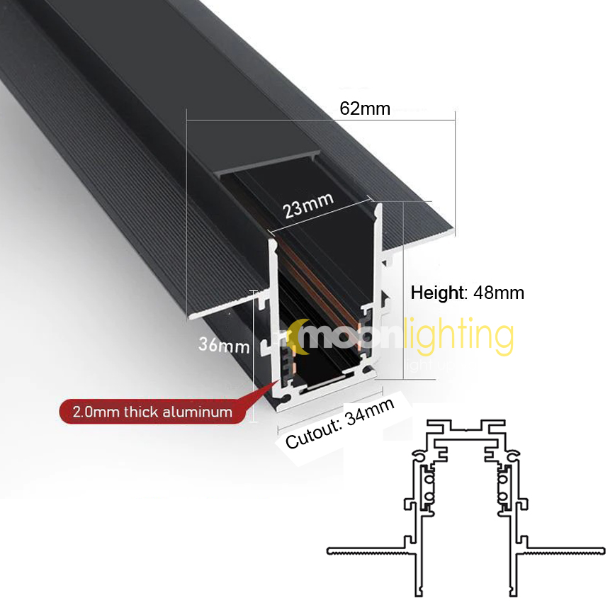 - Thanh ray nam châm âm trần ( hay còn gọi Thanh ray từ âm trần)