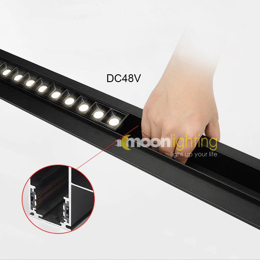 - Với hệ thanh ray từ dễ dàng di chuyển hệ thống đèn trên thanh ray theo sở thích, ý tưởng của bạn: Bạn có thể thiết kế vị trí ánh sáng cho chính công trình của mình. Các thanh ray có thể tạo thành đường thẳng, zíc zắc, hình vuông. Mang tới hệ chiếu sáng đèn led hiện đại cho công trình.